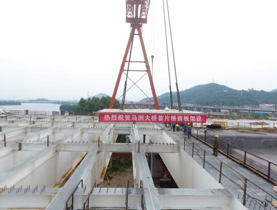 7月15日,在全體參建人員的共同努力和協(xié)作下,漳州馬洲大橋主橋首片橋面板成功架設(shè),這一施工節(jié)點的完成標(biāo)志著該項目工程進(jìn)入到了正橋橋面板的架設(shè)階段。